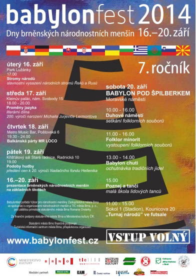 níže naleznete program 7. ročníku festivalu brněnských národnostních menšin BABYLONFEST 2014, který se koná 16. – 20. září.