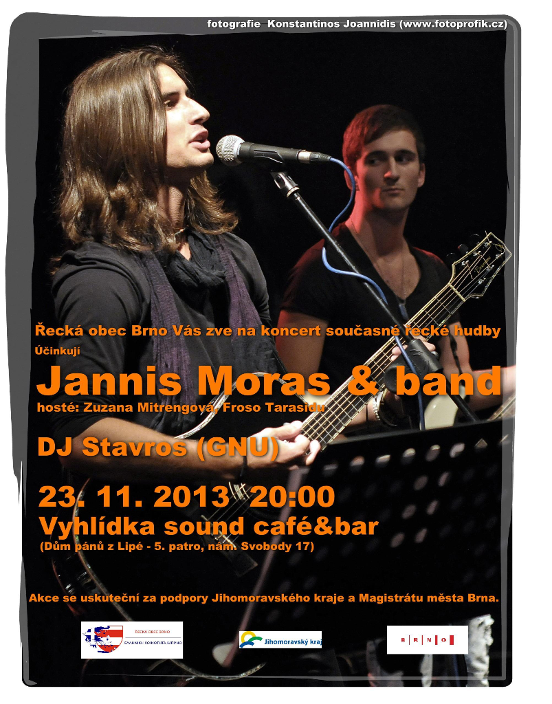 rádi bychom Vás pozvali na koncert současné řecké hudby a řeckou párty v sobotu 23. 11. od 20:00 na Vyhlídce (Dům pánů z Lipé, 5. patro).